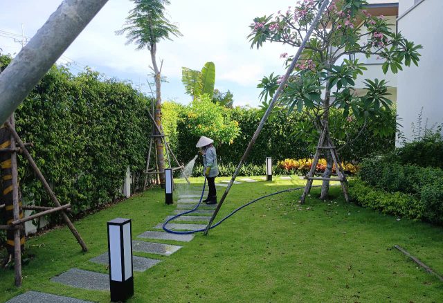 - Có thể kết hợp hòn non bộ, hồ cá, lối đi bằng đá, thác nước mini để tăng thêm tính tự nhiên.