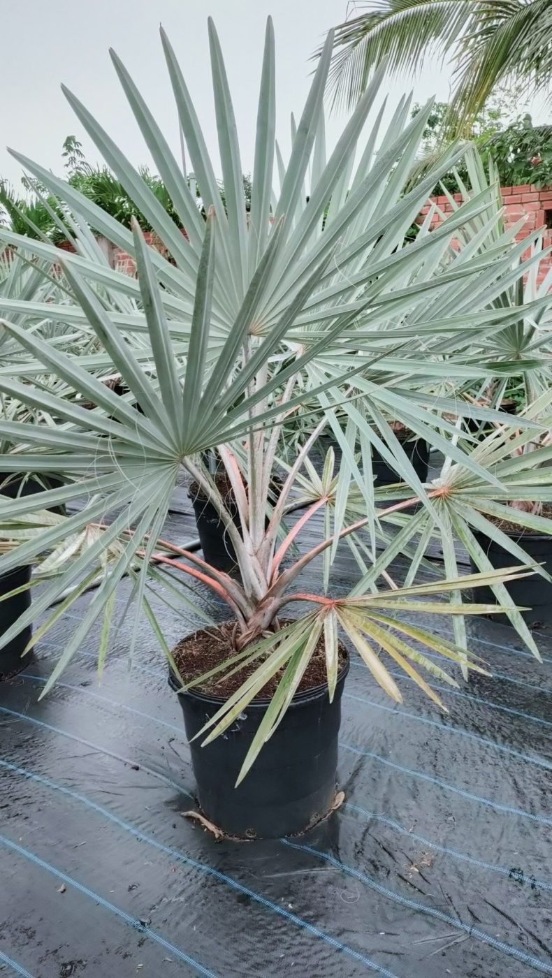 Cây kè bạc (Bismarckia nobilis) là loài cây cọ cảnh có vẻ đẹp độc đáo với tán lá rộng, hình quạt màu xanh bạc nổi bật. Cây có sức sống mạnh mẽ, chịu hạn tốt và ít sâu bệnh, rất thích hợp trồng trong công viên, sân vườn, khu du lịch, resort hoặc dọc các tuyến đường để tạo điểm nhấn cảnh quan sang trọng.